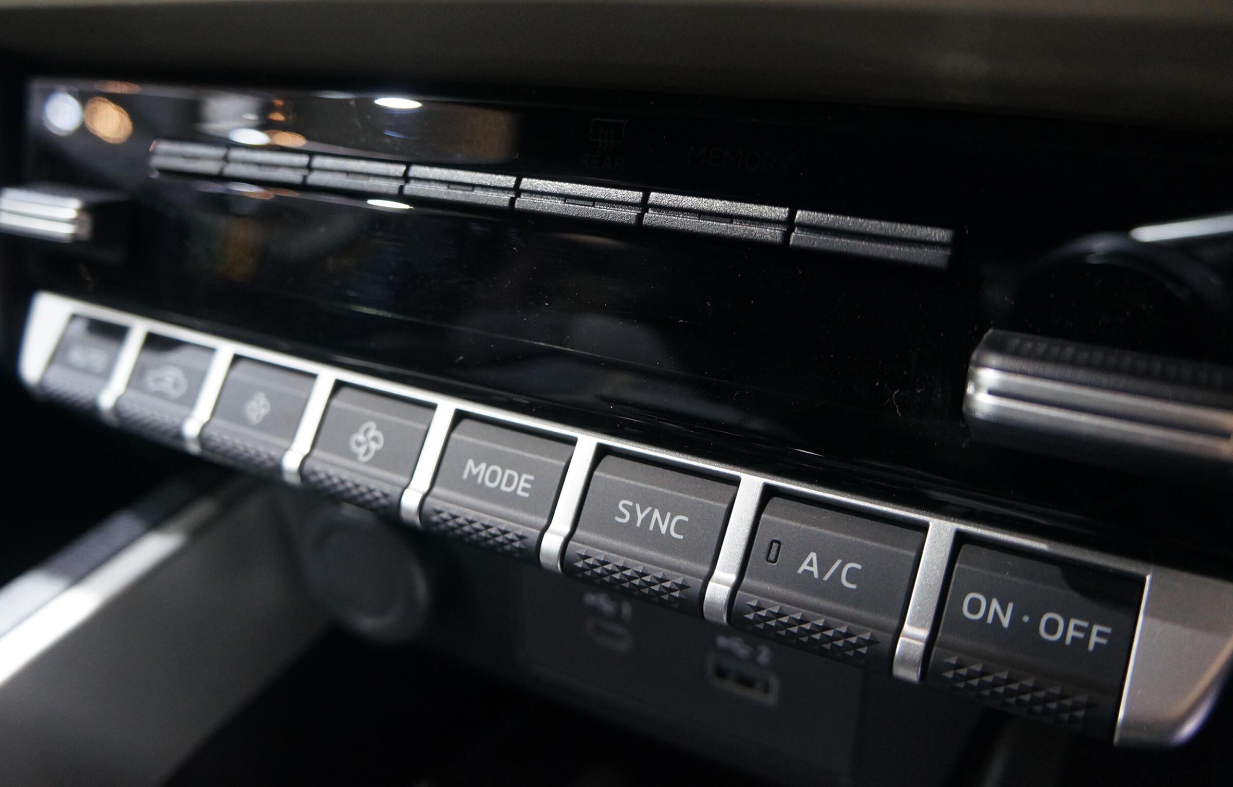 Các núm điều chỉnh điều hòa, và phía dưới là các cổng sạc. Ở hàng ghế sau cũng có ổ cắm riêng