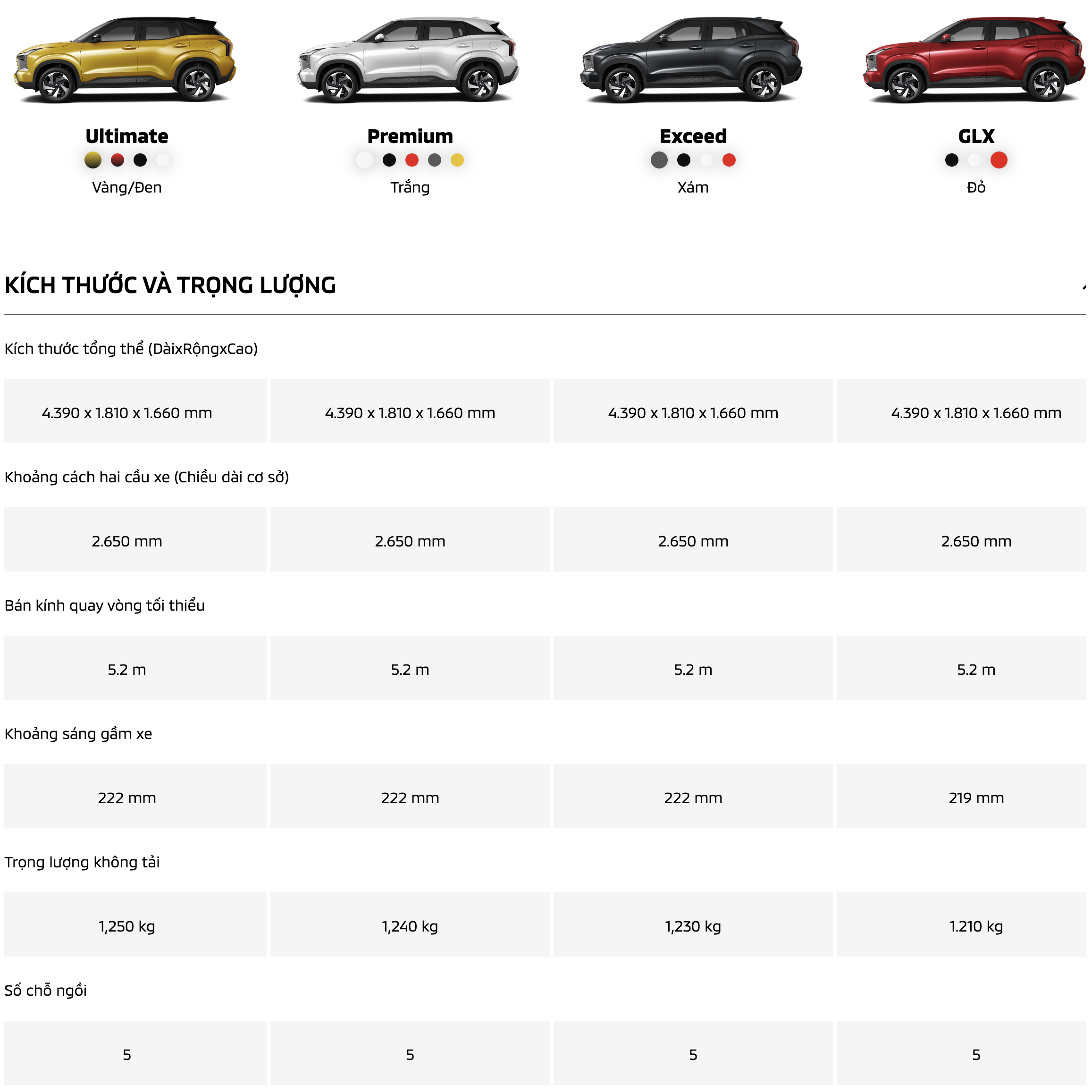 Mitsubishi Xforce 2026 có kích thước tổng thể lần lượt là 4.390 x 1.810 x 1.660 mm