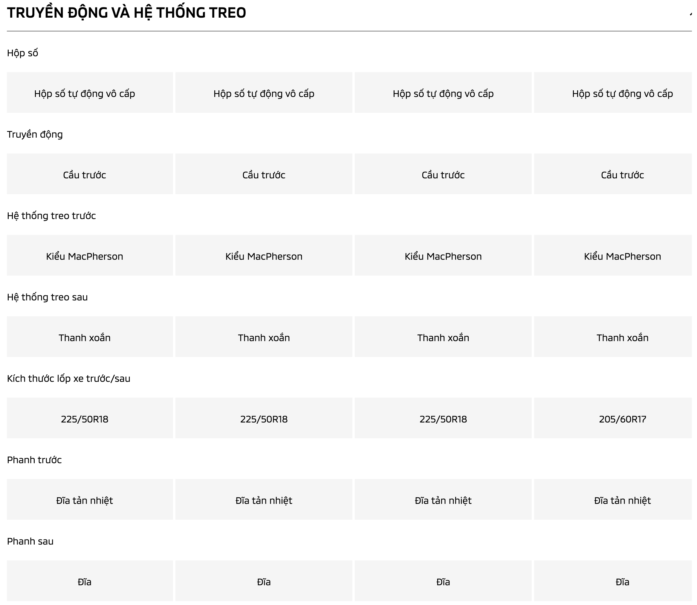 • Hộp số tự động vô cấp CVT hiệu suất cao